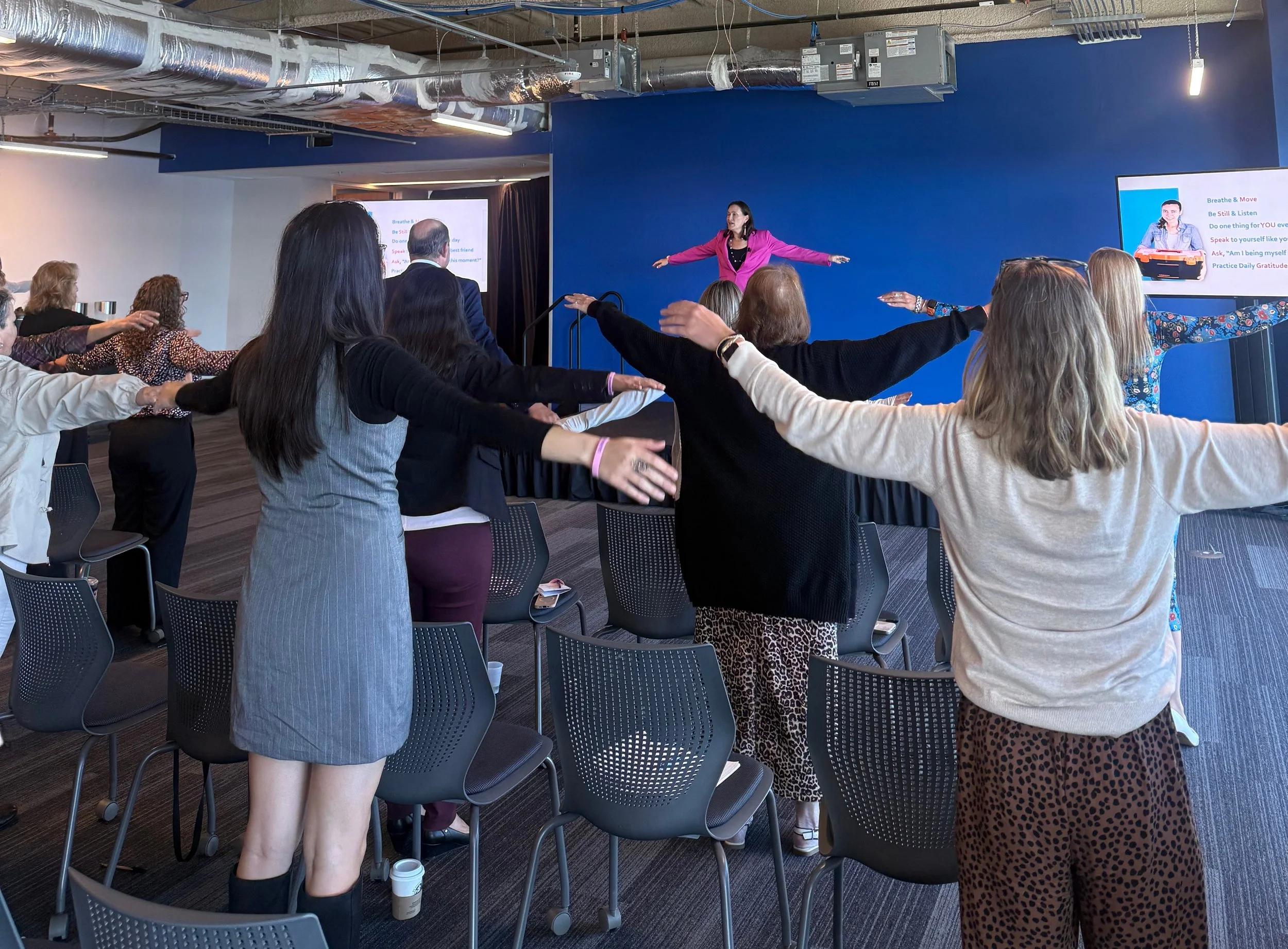 These sessions are designed to be accessible to all experience levels and physical abilities and can be done right in the workplace — no special clothing, equipment, or dedicated space required. Employees can participate comfortably in everyday work attire using chairs or standing beside their desks.
